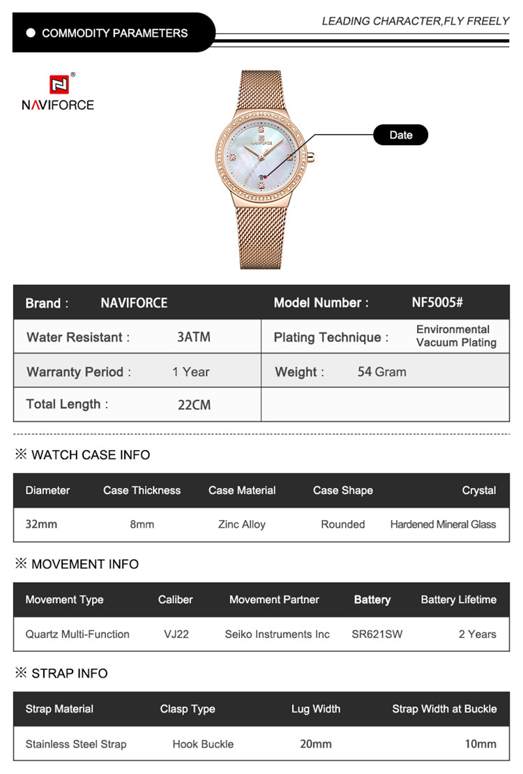 NAVIFORCE 5005 New Women Luxury Brand Watch Diamond Quartz Lady Waterproof Wristwatch Female Fashion Watches Clock Reloj Mujer