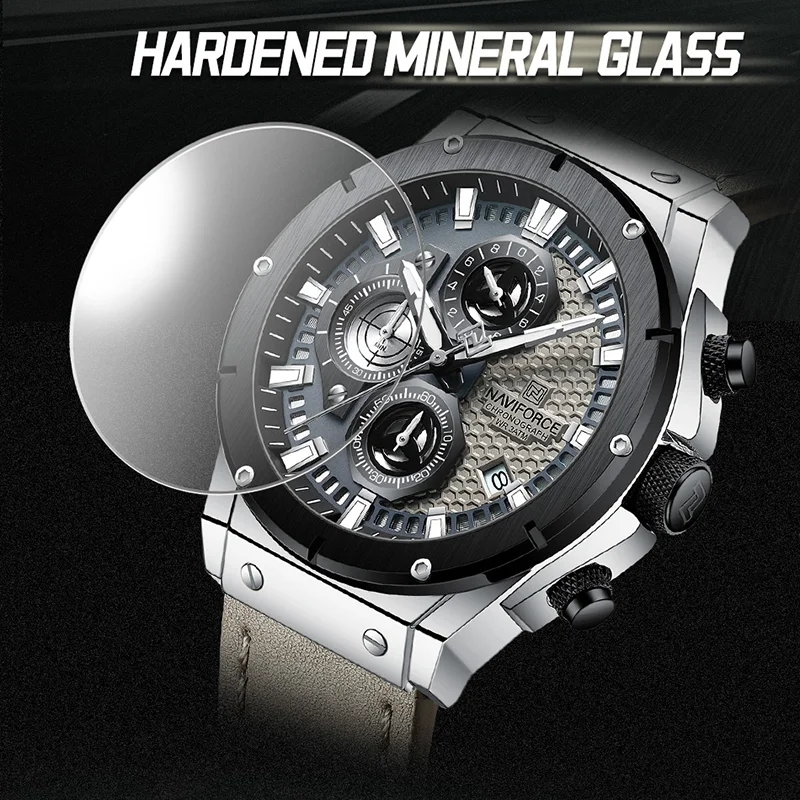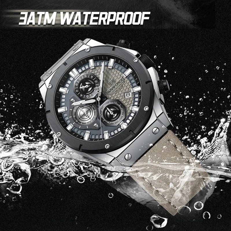 NAVIFORCE 8027 Sport Men's Wristwatch Chronograph Genuine Leather Men Watch Waterproof Quartz