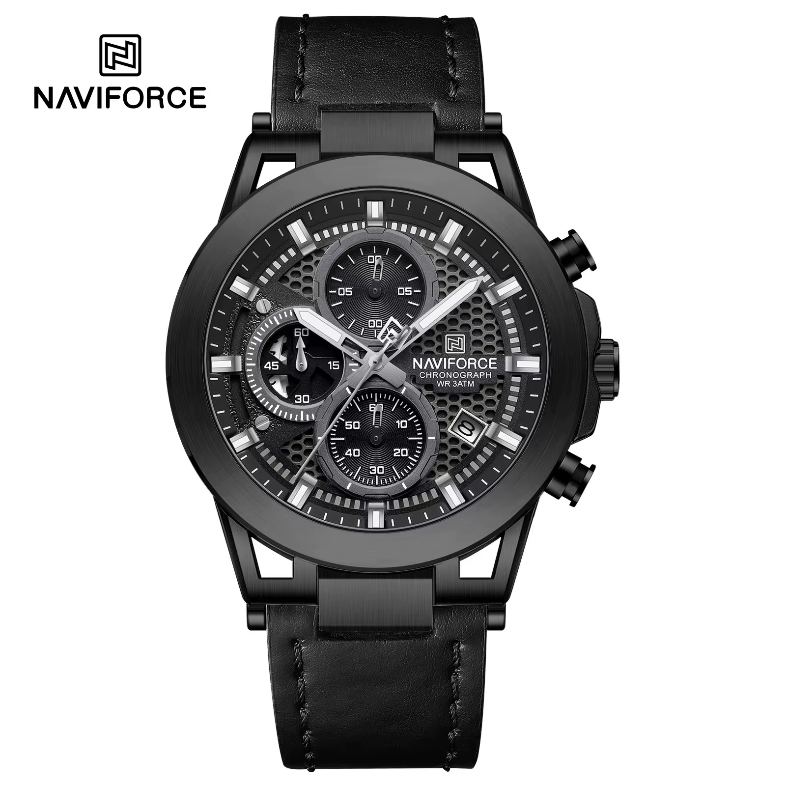 NAVIFORCE 8073 Fashion Men's Watches 3ATM Waterproof Stylish Genuine Leather Strap Luminous Hands Chronograph Date
