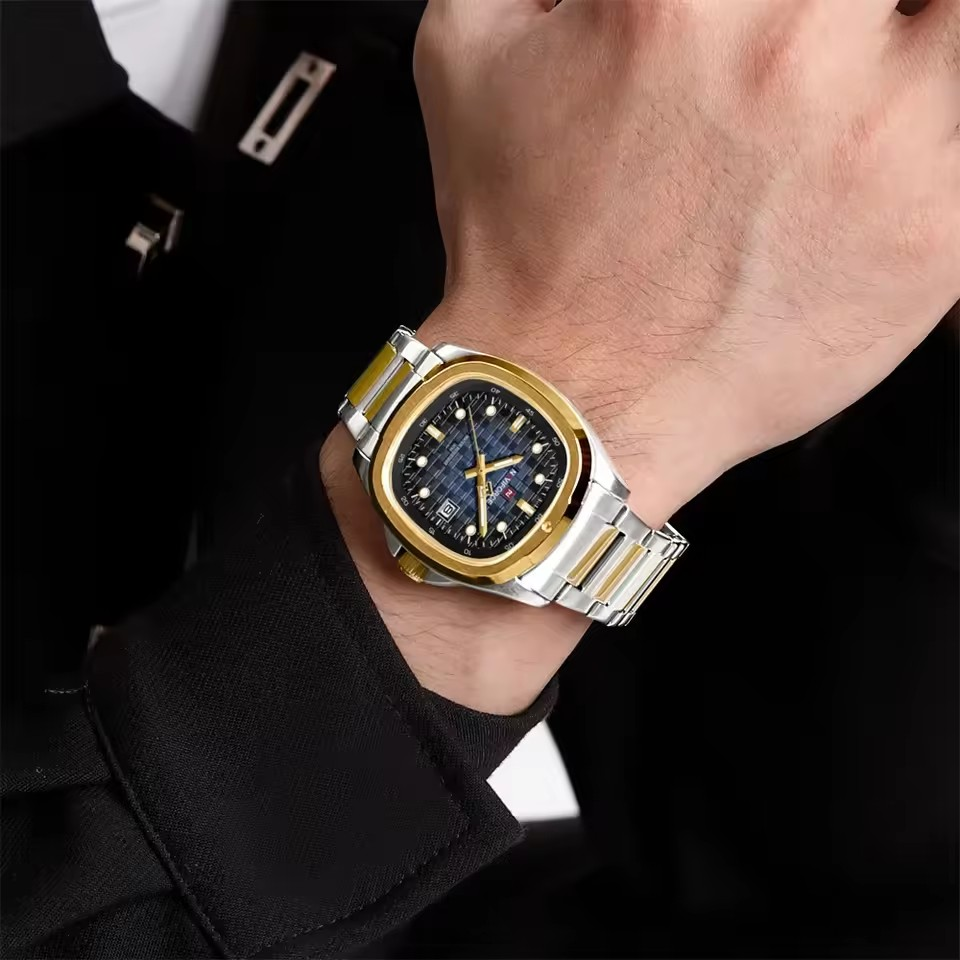 NAVIFORCE 9240 Stainless Steel Luminous Calendar Waterproof Square Dial Men's Simple Luxury Quartz Watch Watches for Men