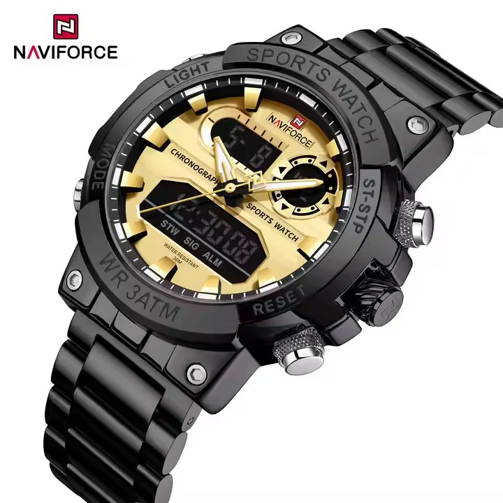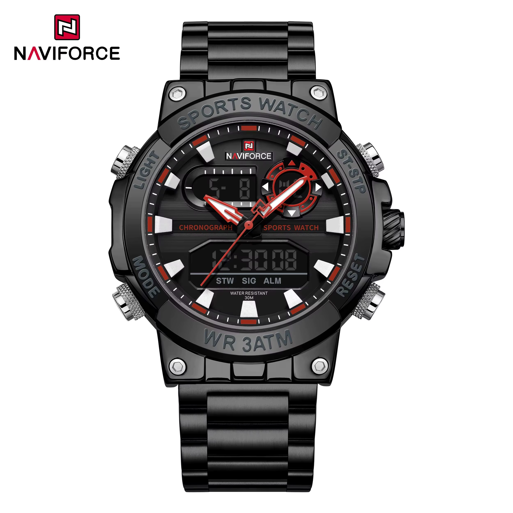 NF9237 Fashion Casual Sports Watches Stainless Steel Japan Quartz Movement Digital Waterproof Men Watch